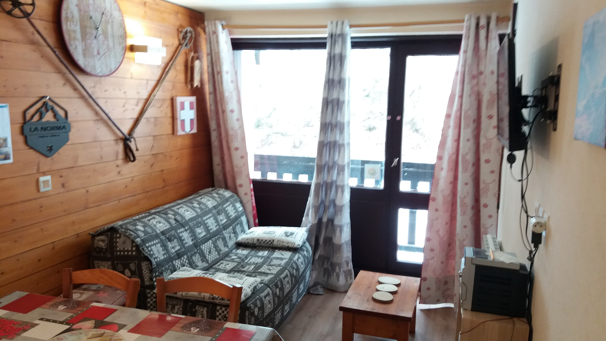 Studio cabine composé d'un séjour coin kitchenette équipée avec balcon orienté Ouest, d'une chambre cabine, d'une salle de bain avec WC + un casier à ski.